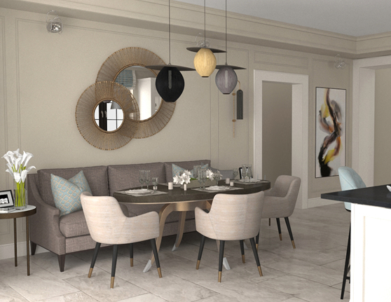 Projekt został zrealizowany w latach 2020–2021 w Kijowie (Ukraina) we współpracy z firmą MondoCasa Design. Koncepcja łączy w sobie elementy klasyki z nowoczesnym podejściem, tworząc elegancką i ponadczasową przestrzeń mieszkalną.